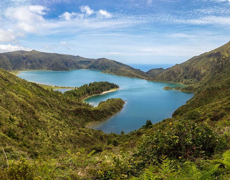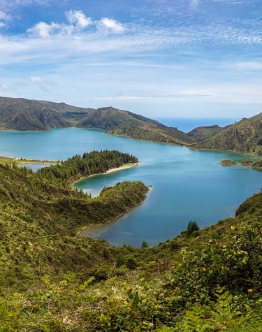 Escondida entre montanhas majestosas na Ilha de São Miguel, a Lagoa do Fogo é um verdadeiro refúgio de paz e beleza intocada. Dizem que suas águas cristalinas refletem não só o céu, mas também os sonhos de quem se aventura por lá...